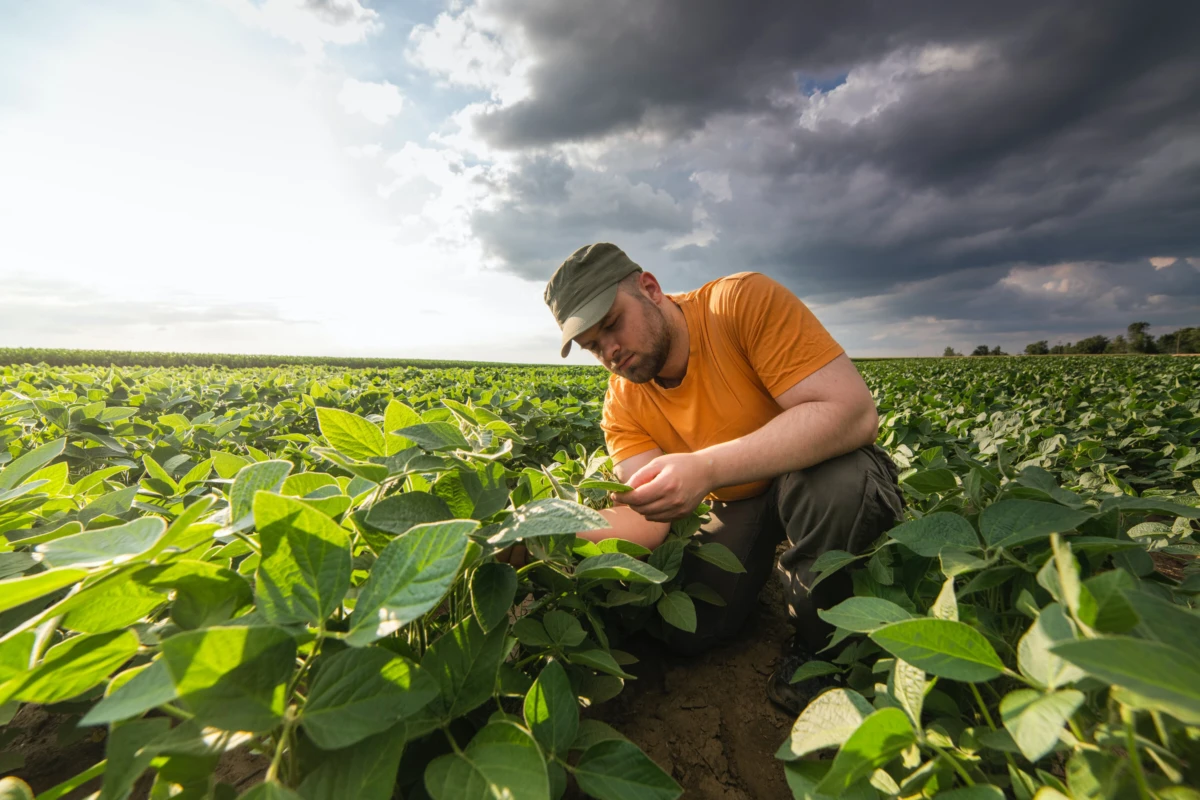 Bild: UNSPLASH in Zusammenarbeit mit Getty Images Foto zum Thema Landwirt auf Sojafeldern. Wachstum, Outdoor)